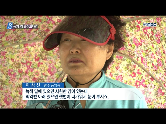 ** '도심공원 일몰제' 시행을 앞두고 민간 공원 개발이 추진되면서 가뜩이나 부족한 녹지 공간이 더 줄어듭니다. 도심 열섬과 열대야의 악순환이 우려됩니다. ** 2019 광주 세계 수영선수권 대회 경기장 입지가 재검토되고 있습니다. 광주를 알릴 수 있는 최적의 공간을 선택하겠다는 취집니다. ** 탈북과 재입북, 재탈북을...