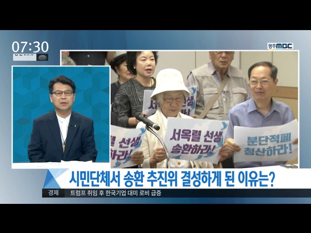 (앵커) 광주 지역의 마지막 장기 구금 양심수인 서옥렬씨를 북으로 돌려보내기 위한 범 시민단체 모임이 어제(25일) 출범됐습니다. 서옥렬 선생 송환추진위원회의 공동 대표를 맡으신 장헌권 목사님과 자세한 이야기 나눠보겠습니다. 안녕하십니까? ------------------------------------------- (질문 1) 우선, 서옥렬 선...