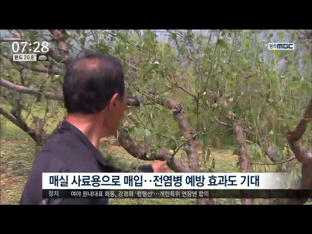 ◀ANC▶ 수확기 우박피해를 입은 매실이 사료용으로 축산농가에 제공됩니다. 과수농가와 축산업계 모두를 지원하는 일거양득의 효과가 기대됩니다. 박광수 기자가 보도합니다. ◀END▶ 지난달 31일밤, 매실 주산지에 집중된 우박피해는 예상보다 심각했습니다. 피해 면적이 순천지역만 440여 헥타에 낙과 피해를 입은 물...