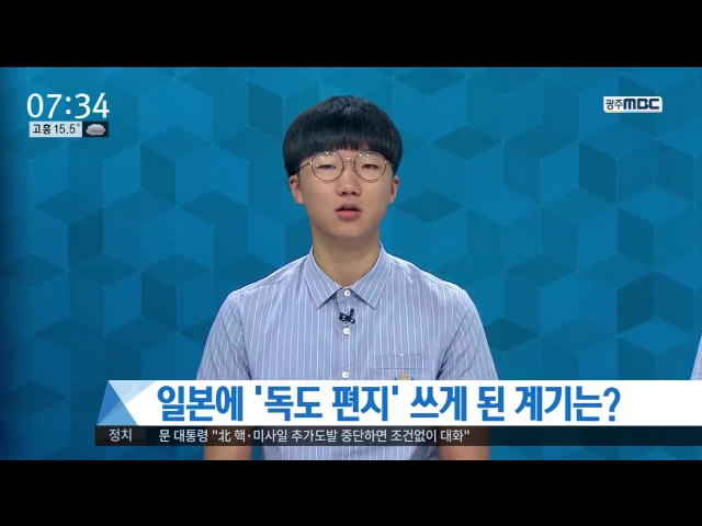 (앵커) 일본 시마네현 56개 중학교에 독도가 대한민국 영토라는 내용의 편지를 보낸 중학생들이 있어 화젭니다. 함평중학교 3학년들이 그 주인공인데요, 그 학생들 중 두 명이 스튜디오에 나와있습니다. 안녕하십니까? (서로 인사) ------------------------------------------- 간단히 자기소개 부탁드립니다. (돌아가면서...