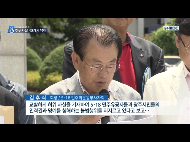 (앵커) 5월 단체들이 법원에 전두환 회고록에 대한 출판과 배포를 금지하는 가처분 신청을 했습니다. 회고록 속에서 찾아낸 허위 사실만 해도 서른 가지가 넘었습니다. 송정근 기자입니다. (기자) 또다시 법원 앞에 선 5월 유족과 단체들. 손에 든 건 전두환 회고록에 대한 출판 금지 가처분 신청서입니다. 전두환 씨는 지...