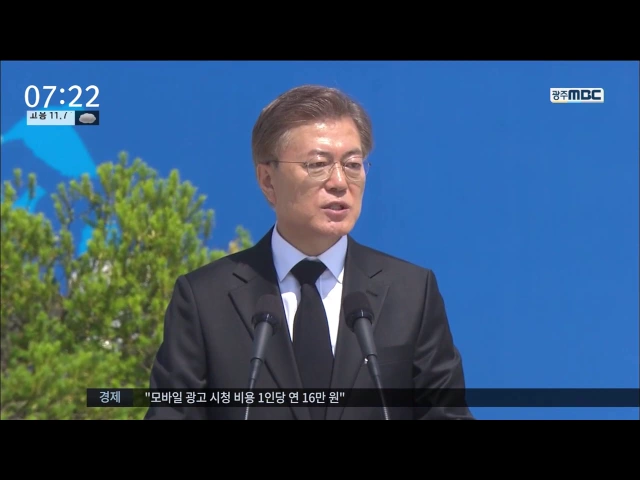 오늘의 주요뉴스... 5.18 민주화운동 37주년 기념식이 어제 국립 5.18민주묘지에서 거행됐습니다. 역대 최대 규모의 추모객이 참여해 임을 위한 행진곡을 제창했습니다. ------------------------------------------- 기념식에 참석한 문재인 대통령은 5.18 정신을 헌법에 담고 발포 책임자를 규명하겠다고 약속했습니다. -...