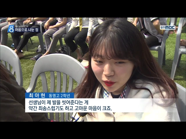 (앵커) ◀ANC▶ 김영란 법 시행 이후 처음으로 맞은 스승의 날... 꽃과 선물이 없어도 스승과 제자가 교감하는 뜻깊은 날을 보낸 학교들이 있습니다. 이미지 뉴스리포터입니다. (리포터) ◀VCR▶ 240여 명의 전교생이 양말을 벗고 학교 운동장에 모여 앉았습니다. 곧이어 꽃 물을 들고 온 선생님이 무릎을 꿇고 학생들의 ...