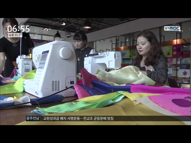 (앵커) ◀ANC▶ 자투리 천을 모아 만드는 조각보는 종종 하나의 사회로 비유되곤 합니다. 다양한 모양의 조각이 아름다운 조화를 이루기 때문인데요. 5.18에 대한 하나하나의 시민의 마음이 거대한 조각보로 완성돼 5.18 전야에 옛 전남도청에서 선보입니다. 이미지 뉴스리포터입니다. (리포터) ◀VCR▶ 색색의 천과 가위...