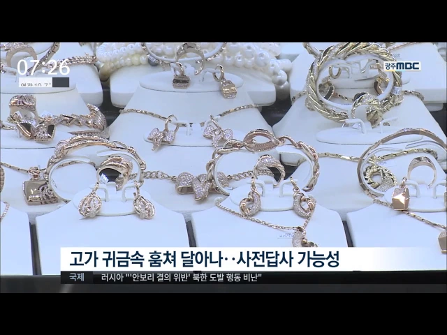(앵커) 광주의 한 금은방에 2인조 도둑이 침입해 2억원이 넘는 귀금속을 훔쳐 달아났습니다. 유리창을 깨고 귀금속을 털어가기까지 채 1분도 걸리지 않았습니다. 송정근 기자입니다. (기자) 마스크로 얼굴을 가린 남성 2명이 망치로 진열대를 두들겨 깹니다. 유리를 마저 깨더니 미리 준비해 온 쇼핑백에 귀금속을 쓸어 담...