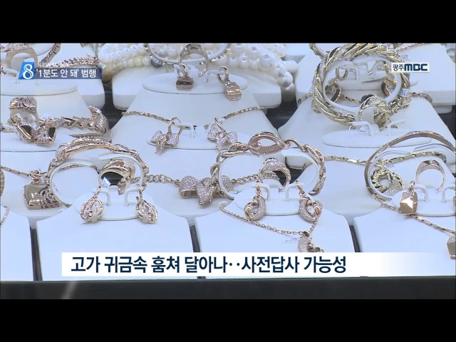 (앵커) 광주의 한 금은방에 2인조 도둑이 침입해 2억원이 넘는 귀금속을 훔쳐 달아났습니다. 유리창을 깨고 귀금속을 털어가기까진 채 1분도 걸리지 않았습니다. 송정근 기자입니다. (기자) 마스크로 얼굴을 가린 남성 2명이 망치로 진열대를 두들겨 깹니다. 유리를 마저 깨더니 미리 준비해 온 쇼핑백에 귀금속을 쓸어 담...