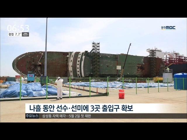 ◀ANC▶ 주말인 오늘도 세월호 미수습자를 찾기 위한 선체 수색이 이어졌습니다. 일반 승객들이 탔던 3층 수색 준비와 함께 수색작업 속도를 높이기 위해 출입구가 추가로 마련됐고 선체 조사 이후 절단 등도 고려되고 있습니다. 김 윤 기자가 보도합니다. ◀END▶ 세월호 선수 부분에 뚫린 출입구를 통해 작업자들이 분...
