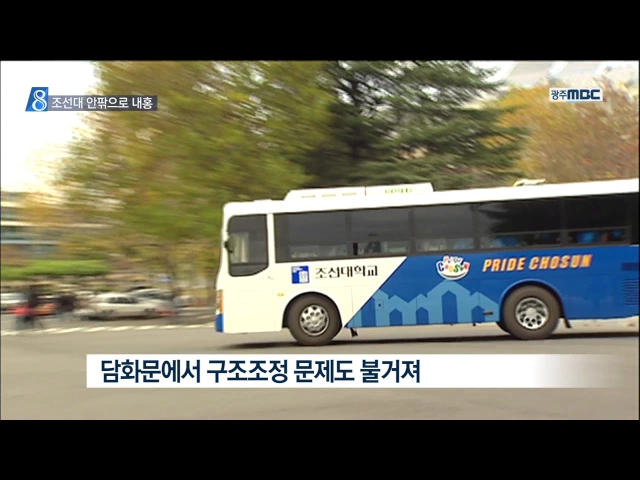 ◀ANC▶ 요즘 조선대가 말이 아닙니다. 차기 이사회 구성 문제를 끝내 매듭짓지 못해 교육부에서 임시 이사가 파견될 예정입니다. 또 학과 구조조정 문제로 학내 갈등까지 불거지고 있습니다. 이재원 기잡니다. ◀END▶ ◀VCR▶ 교육부의 최후 통첩을 앞두고 열린 조선대학교 이사회. 비공개로 진행된 이사회는 신규 교...
