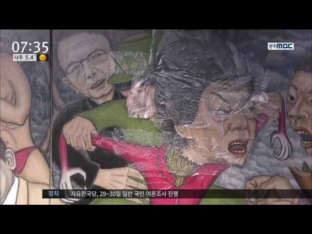 (앵커) ◀ANC▶ 정치적 외압 논란 속에 전시되지 못했던 홍성담 작가의 세월오월 작품이 세월호 3주기를 맞아 시민들에게 공개됐습니다. 세월호 참사 피해자들의 고통을 그려낸 작품들도 추가로 선보였습니다. 이미지 뉴스리포터입니다. (리포터) ◀VCR▶ 박근혜 전 대통령을 허수아비로 묘사해 논란이 됐던 홍성담 작가...
