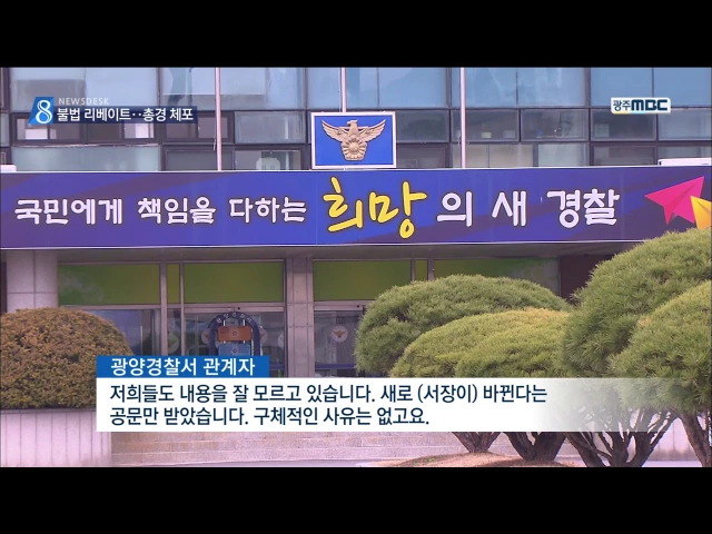 ◀ANC▶ 의료계 불법 리베이트를 수사하고 있는 검찰이 뇌물을 받은 혐의로 경찰서장을 체포했습니다. 해당 서장은 앞선 경찰 조사에선 무혐의 처분을 받았습니다. 문형철 기자입니다. ◀VCR▶ 광양경찰서장 48살 서 모 총경이 뇌물수수 혐의로 검찰에 붙잡혔습니다. 광주지방검찰청 특수부는 어제(22) 저녁, 광주의 한 ...