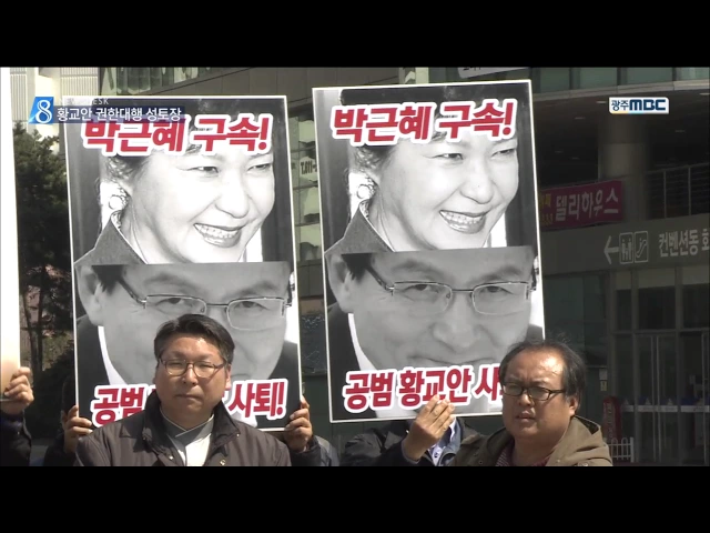 (앵커) 광주에서 열린 세계 물의 날 행사에 황교안 대통령 권한대행이 참석했습니다. 탄핵 정국 속에서 황 권한대행의 행보에 불만이 많았던 시민사회단체들... 국정 농단의 책임을 지고 당장 사퇴하라며 반발했습니다. 이계상 기자입니다. (기자) 세계 물의 날 기념행사장 앞에서 경찰과 시민단체 회원들이 몸싸움을 벌입...