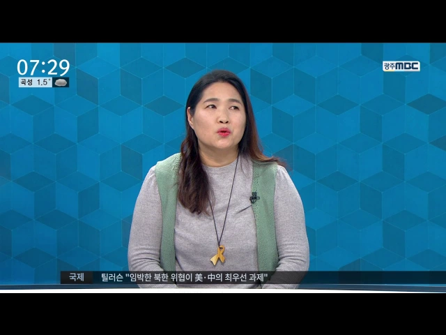 (앵커) 한 달 뒤면 세월호 참사 3주기입니다. 유가족들과 시민들은 각자의 방법으로 세월호 참사를 기억해왔는데요. 3년 간의 기억을 모아둔 전시가 5&\middot;18 민주화운동기록관 지하 1층에 마련됐습니다. 광주시민상주모임에 참여하고 계신 서양화가 김화순님 모시고 자세한 이야기 나눠보겠습니다. 안녕하십니까? ----...