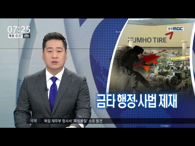 (앵커) 그제(15) 안전사고를 당한 금호타이어 직원이 치료 중에 끝내 숨졌다는 소식 전해드렸는데요. 노동청이 금호타이어에 대해 행정적, 사법적 제재에 들어갔습니다. 노조 측도 공장장을 처벌해 달라고 진정서를 제출했습니다. 송정근 기자입니다. (기자) 금호타이어 공장에서 컨베이어벨트를 청소하다 몸이 끼이는 사고...