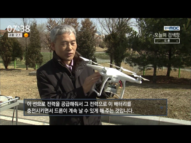 오늘의 검색어 : 드론 [오프닝] 국내 시장 2조원. 세계 300만대 생산 규모까지 성장한 드론. 우리지역 대학이 국제 대회에서 세계 3위를 했다고 합니다. 그 비결은 무엇일까요. 질문) 유선 충전 드론이 무엇인가요? "보통 드론들은 배터리만으로 가동이 되거든요. 근데 저희는 보시다시피 이렇게 선이 있어요. 이 선으로 전...