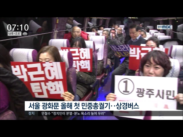 ◀ANC▶ 탄핵심판 마지막 변론기일이 다가오는 가운데 박근혜 대통령의 취임 4주년인 오늘(25) 다시 한 번 대규모 촛불집회가 열립니다. 민중총궐기가 함께 열리는 서울로 가는 상경버스가 운행되고, 금남로에서 있을 촛불집회 준비도 한창입니다. 김인정 기자입니다. ◀VCR▶ 박근혜 대통령의 취임 4주년과 탄핵심판 마...