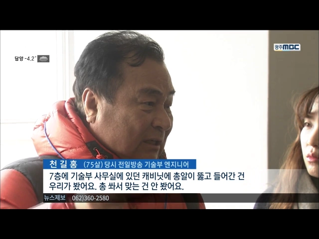 ◀ANC▶ 지난 80년 5.18 당시 헬기 공중사격 가능성을 보여주는 증언과 단서들이 계속 나오고 있습니다. 전일빌딩에 헬기가 총을 쐈다면 안에서 저항하던 시민군을 조준사격했을 개연성도 새롭게 제기됐습니다. 김인정 기자입니다. ◀VCR▶ 5.18 기록관에 모인 초로의 노인들이 80년 5월의 전일빌딩에 대해 집단으로 증언...