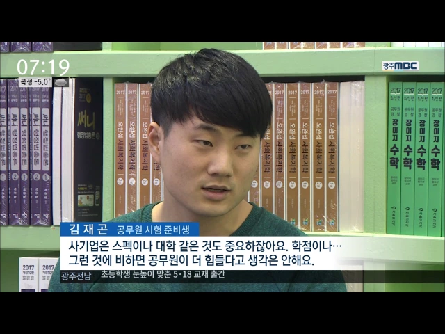 (앵커) 지방 공무원 채용 인원이 6년만에 처음으로 줄었습니다. 특히 광주의 경우는 채용 규모가 다른 시*도보다 훨씬 적어서 이른바 공시생들의 경쟁이 더 치열해질 것으로 보입니다. 윤근수 기자 (기자) 취업난에 시달리는 요즘 청년들에게 공무원은 손꼽히는 희망 직종입니다. 시험으로만 승부할 수 있다는 점에서 특히 ...