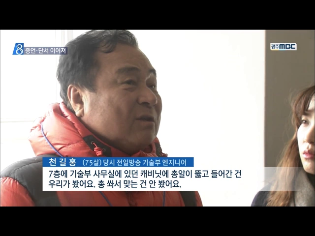 ◀ANC▶ 80년 5.18 당시 헬기 사격 여부에 대한 증언들이 잇따라 나오고 있습니다. 헬기에서 쏜 것으로 추정되는 탄피도 추가로 공개됐습니다. 김인정 기자입니다. ◀VCR▶ 5.18 기록관에 모인 초로의 노인들이 80년 5월의 전일빌딩에 대해 집단으로 증언을 시작합니다. 당시 전일빌딩에 있던 전일방송 재직자들로, 80년 ...