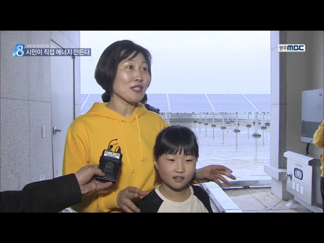 (앵커) 시민들이 직접 힘을 모아 만든 호남 최초의 태양광 발전소가 탄생했습니다. 아이들의 통장을 깨서 동참하는 등 남녀노소 할 것 없이 십시일반 힘을 보태 직접 에너지 생산의 주체가 됐습니다. 송정근 기자입니다. (기자) 어린이부터 70대 노인까지.. 다양한 시민들이 자신이 힘을 보태 만든 태양광 발전소를 둘러보...