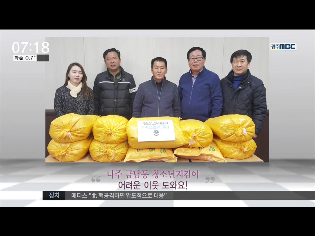 봄의 시작을 알리는 입춘을 맞아 구례향교 유림들이 입춘축을 직접 적어 향교 대문에 붙이는 행사를 열었습니다. (3) KTG 전남본부가 여수수산시장 화재로 피해를 입은 상인들에게 성금을 전달했습니다. (2) 나주시 금남동 청소년지킴이가 어려운 이웃들에게 전해달라며 쌀을 주민센터에 기탁했습니다. 조선대학교 국제봉사...