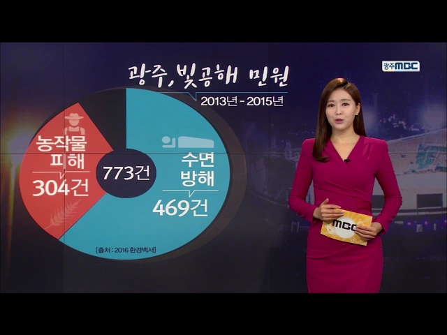 도심을 빼곡히 수놓은 조명들.. 광주에서 밤하늘 별빛을 보는 것이 어려워지고 있죠.. 뿐만 아니라, 가로등과 옥외광고 조명 등 인공 조명 때문에 생활하는데 불편을 호소하는 시민들도 늘고 있습니다. 최근 3년간 접수된 민원은 773건. 지난 2013년 164건에서 2015년 423건으로, 2년 사이 두 배 이상 증가했습니다. 인공조...