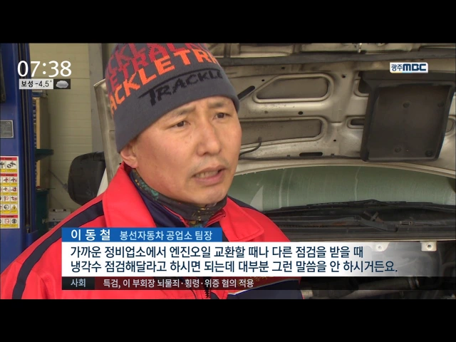 (앵커) ◀ANC▶ 지난 주말 갑작스러운 한파로 자동차 운전에 애 먹으신 분들 있으실겁니다. 냉각수 동파나 배터리 방전 때문인데요 겨울철 차량 관리 요령, 이미지 뉴스리포터가 알려드립니다. (리포터) ◀VCR▶ 꽁꽁 언 자동차 수리가 한창입니다. 지난 주말 갑작스러운 한파가 몰아치면서 부동액이 부족했던 차량의 엔...