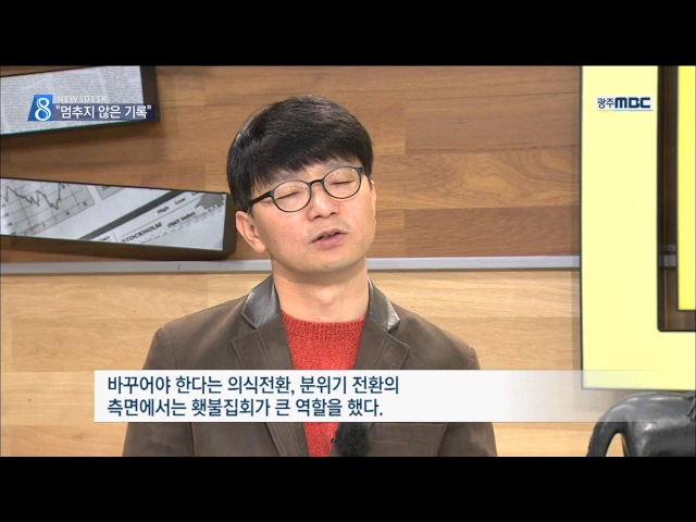 ◀ANC▶ 박근혜 정권의 국정농단 사태는 2016년 대한민국을 거대한 충격에 빠뜨렸습니다. 그러나 시민들은 무기력함에 빠지지 않고 광장으로 나와 촛불을 들고나와 역사의 주인공으로 우뚝 섰습니다. 아직 멈추지 않은 촛불의 기록을 김인정 기자가 정리했습니다. ◀VCR▶ 2016년 겨울, 광장의 밤은 어둡지 않았습니다. ...