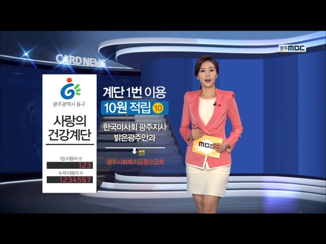 재미를 뜻하는 'Fun'과 기부를 의미하는 'Donation'를 합친, '퍼네이션' 들어보셨나요? 단순한 기부금 전달에서 벗어난 건데.. 광주에선 지난해 동구청사와 상무역에 조성된 '사랑의 건강계단'이 대표적입니다. 계단을 한 번 이용하면, 10원씩 후원금이 적립되는 형식인데요. 적립금은 후원 주체인 한국마사회와 밝은광주안...