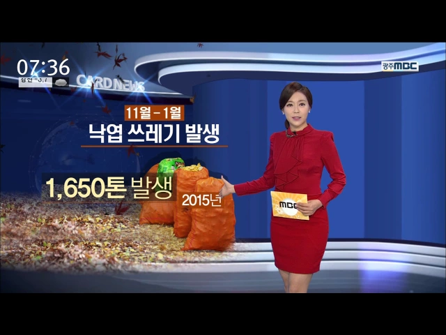 요즘 길을 걷다보면, 수북히 쌓여있는 낙엽, 쉽게 볼 수 있죠? 해마다 11월부터 1월까지, 광주 지역에서 840여 명의 환경미화원들이 낙엽을 청소하고 있습니다. 지난해 이 기간에 1,650톤의 낙엽쓰레기를 수거했습니다. 하루에 30톤 정도가 발생한 셈입니다. 이렇게 많은 양의 낙엽을 제때 치우지 않으면, 비에 젖은 낙엽은...