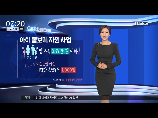 '아이 돌보미 지원사업'를 아십니까? 돌보미가 직접 집을 방문해 아이를 보살펴 주는 서비습니다. 소득 기준에 따라 다르지만, 4인 가구를 기준으로, 월 소득이 237만원 이하인 가정이라면, 한 아이를 기준으로 시간 당 1000원을 지급하면 이용할 수 있습니다. 저소득층의 양육 부담을 덜어주고, 경력이 단절된 여성에게 일...