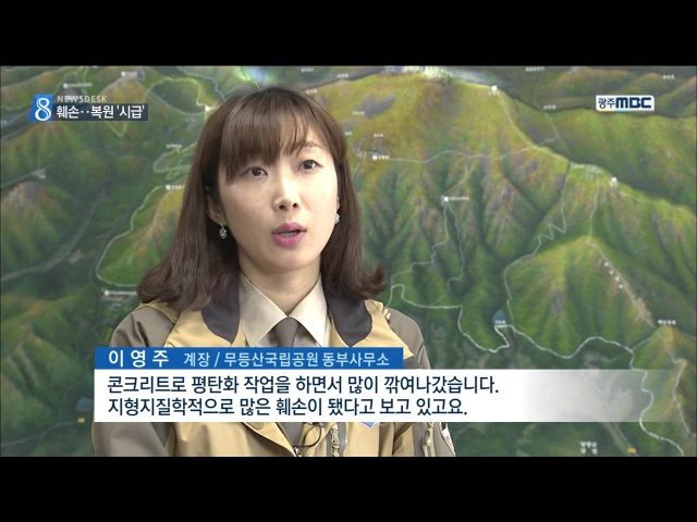 ◀ANC▶ 국립공원 무등산의 천왕봉 일원 등 정상부가 크게 훼손된 것으로 조사됐습니다. 군 부대 주둔으로 지형이 훼손되고 지질학적 가치도 훼손됐다는 구체적 연구 결과가 나오면서 군 부대 이전과 복원이 시급해 보입니다. 김인정 기자입니다. ◀VCR▶ 무등산 정상부인 천왕봉의 1937년 모습입니다. 지금은 군부대가 ...