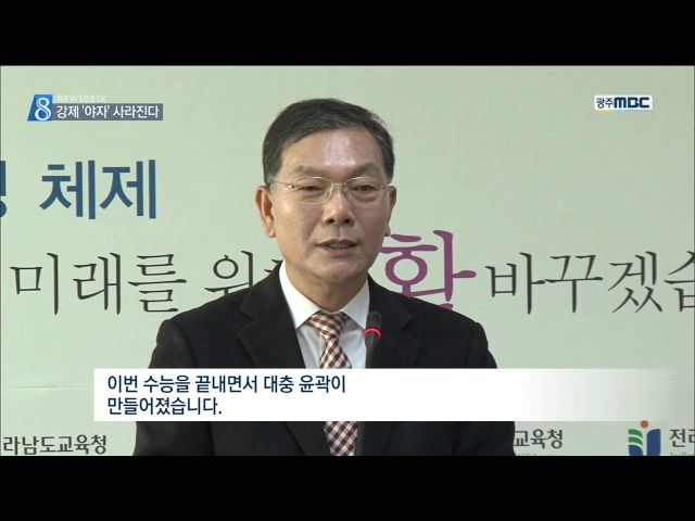 ◀ANC▶ 전남교육청이 강제적인 고등학교 야간 자율학습과 보충수업을 폐지합니다. 학부모와 교사, 시민단체와 함께 전남 교육 방향을 내년부터 완전히 바꾸기로 했습니다. 양현승 기자입니다. ◀END▶ ◀VCR▶ 전남의 일반계 고등학교의 강제 야간 자율학습과 보충수업이 원칙적으로 금지됩니다. 내년 4월 도입을 앞둔...