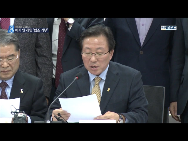 (앵커) 정부가 일방적인 역사 교과서 국정화를 중단하지 않을 경우 전국 교육감들이 구체적인 행동에 나서기로 했습니다. 오는 28일로 예정된 '현장 검토본' 공개를 취소하지 않을 경우 어떤 협조도 거부하기로 결의했습니다. 한신구 기자의 보도 (기자) 국민의 뜻을 거스르는 역사 교과서 국정화 반대에는 '진보'와 '보수'...