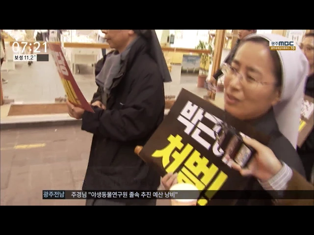 ◀ANC▶ 거리로 나온 '분노의 민심'이 점차 커져가고 있습니다. 어린이, 청소년부터 중장년층까지 촛불을 들고 거리로 나오고 있습니다. 오는 11월 12일 열릴 최대 규모의 촛불 집회를 향해 촛불은 꺼지지 않고 타오를 전망입니다. 김인정 기자의 보도입니다. ◀VCR▶ 촛불을 든 수녀들이 광주 금남로 거리로 나섰습니다....