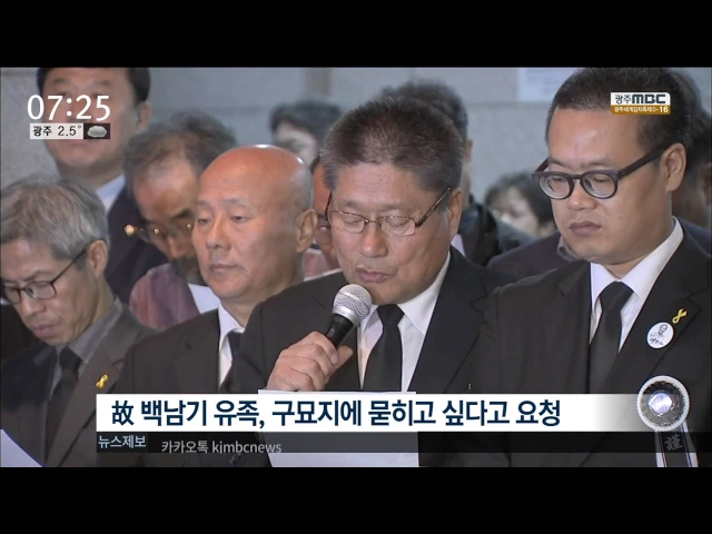 (앵커) 경찰이 쏜 물대포에 맞아 3백여일동안 사경을 헤매다 숨진 故 백남기 농민이 광주 5.18 구묘역에 안장됩니다. 80년 5월 당시 민주화운동을 한 백남기 씨는 유공자 신청을 하지 않은 5월 유공자인데요. 송정근 기자입니다. (기자) 지난해 11월 경찰이 쏜 물대포를 맞고 쓰러진 뒤 317일동안의 병상 투쟁 끝에 숨진 故...