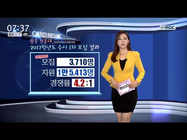 요즘 취업이 잘 되는 분야는 어딜까요? 대입 수험생들이 많이 지원한 학과를 보면 알 수 있겠죠? 2017학년도 전문대 수시 1차 모집 결과를 살펴보겠습니다. 올해 광주 4개 전문 대학에서는 3천 7백여 명을 뽑는데요, 만 5천 4백여 명이 지원해 평균 4대 1의 경쟁률을 보였습니다. 특히, '간호학과', '응급구조과', '물리치...