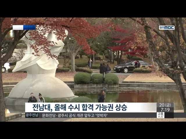 수험생들이 하향 안정 지원 추세와 공기업 지방 이전 효과와 맞물려 전남대와 조선대의 입학 경쟁률이 높아지고 있습니다. ******************************************* 국립아시아문화전당의 다음 주 공식 개관을 앞두고 문화전당과 광주시가 엇박자 행보를 보이고 있습니다. ***************************************. ...