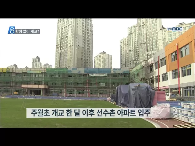 (앵커) 광주 U대회 선수촌 아파트에 내년 봄에 초등학교가 새로 문을 엽니다. 그런데 학교가 개교한 뒤에야 입주가 시작되기 때문에 자칫하면 학생들 없이 학교가 신학기를 맞을 수도 있습니다. 혼란이 예상됩니다. 이계상 기자가 취재했습니다. (기자) U대회 선수촌 아파트 안에 자리잡은 광주 주월초등학교 재건축 공사가...
