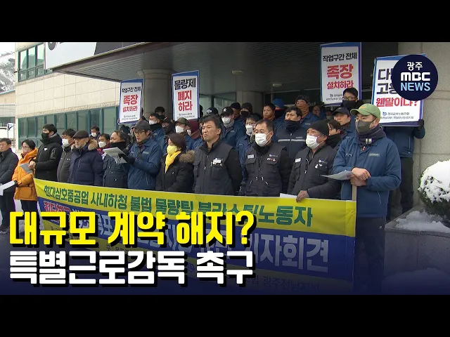 (앵커) 선체에 도장을 하기 전, 페인트가 잘 묻도록 표면의 이물질을 제거하는 공정을 '블라스팅' 이라고 하는데요. 그런데 현대삼호중공업 사내하청 블라스팅 근로자들이 대규모 계약해지를 통보 받았다며, 고용노동부에 특별근로 감독을 요구하고 나섰습니다. 박종호 기자가 취재했습니다. (기자) 현대삼호중공업 사내하...
