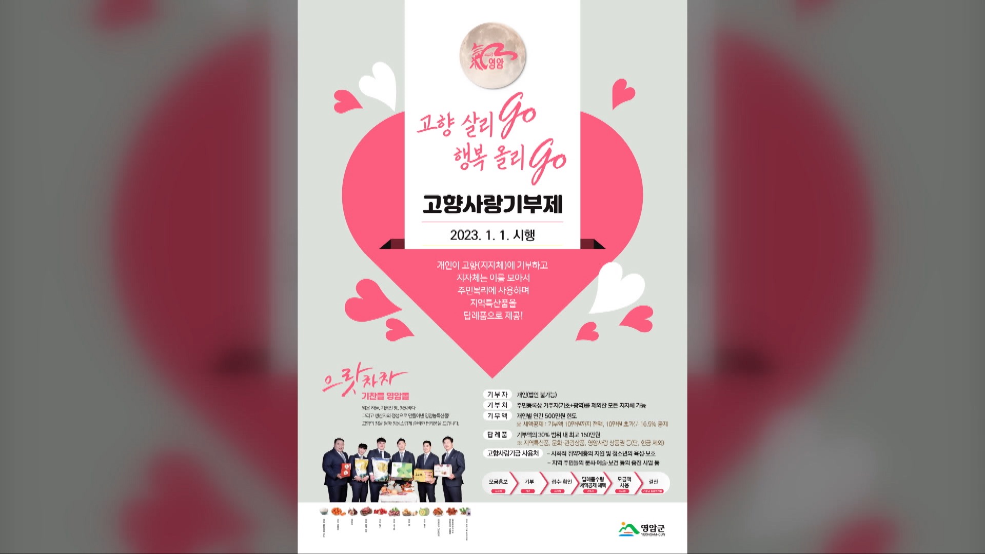 내년 1월 시행되는 고향사랑기부제를 앞두고 이색 답례 품목들이 눈길을 끌고 있습니다. 영암군은 지역 특산품 위주였던 답례품목에 '천하장사와 함께하는 식사데이트권'과 부모님 안부 살피기, 장수사진 촬영 등 이색 품목을 선정했습니다. 또 명예형 답례품으로 일정 금액 이상 기부자를 대상으로 천하장사와 씨름 체험,...