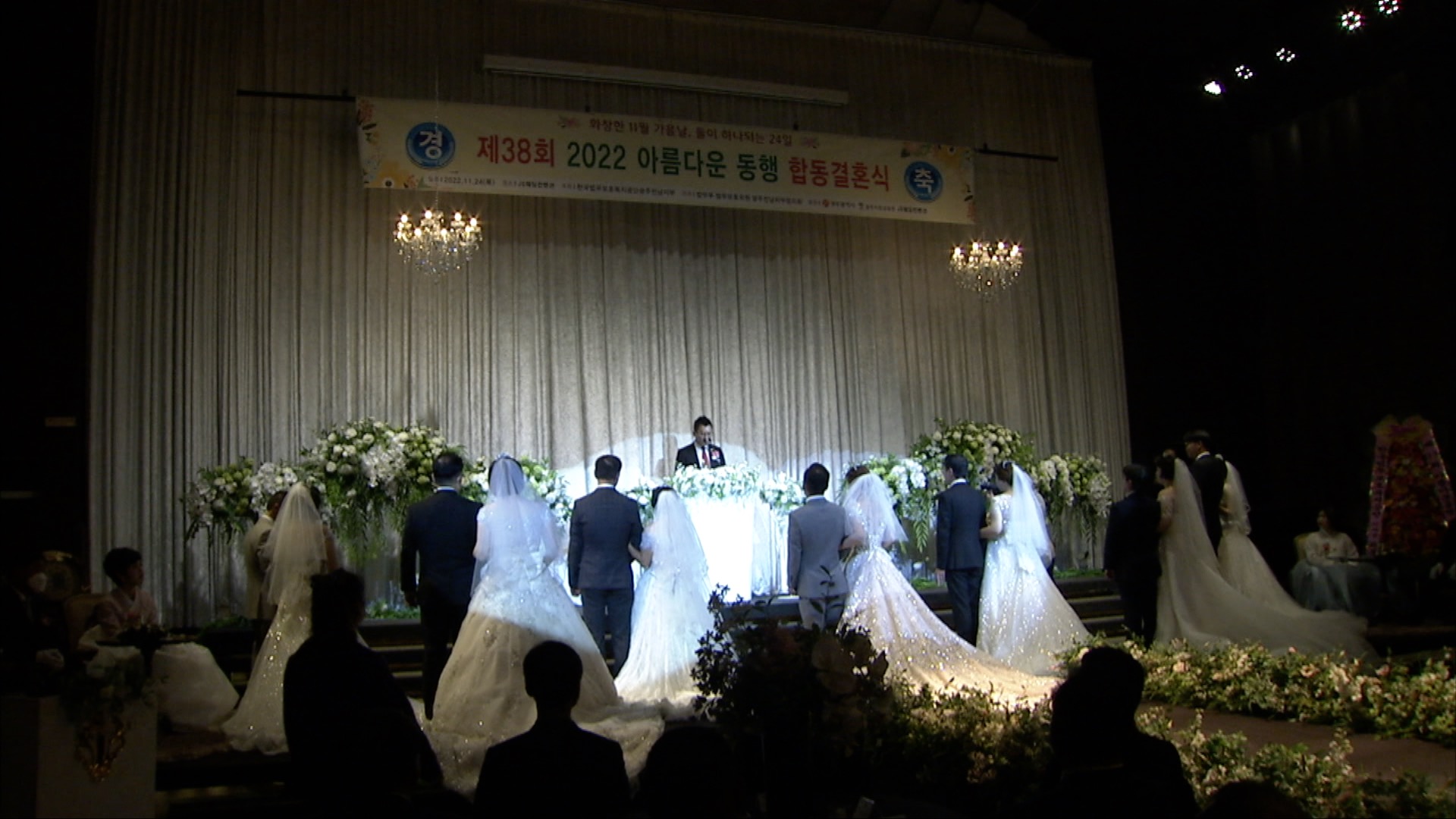 법무보호대상인 동거부부들이 합동 결혼식을 올렸습니다. 한국법무보호복지공단 광주전남지부는 오늘(24) 오후 광주 서구의 한 예식장에서 법무보호대상자인 동거부부와 미혼자 7쌍이 가정을 이루고 건전한 사회인으로 복귀할 수 있도록 합동 결혼식을 열었습니다.