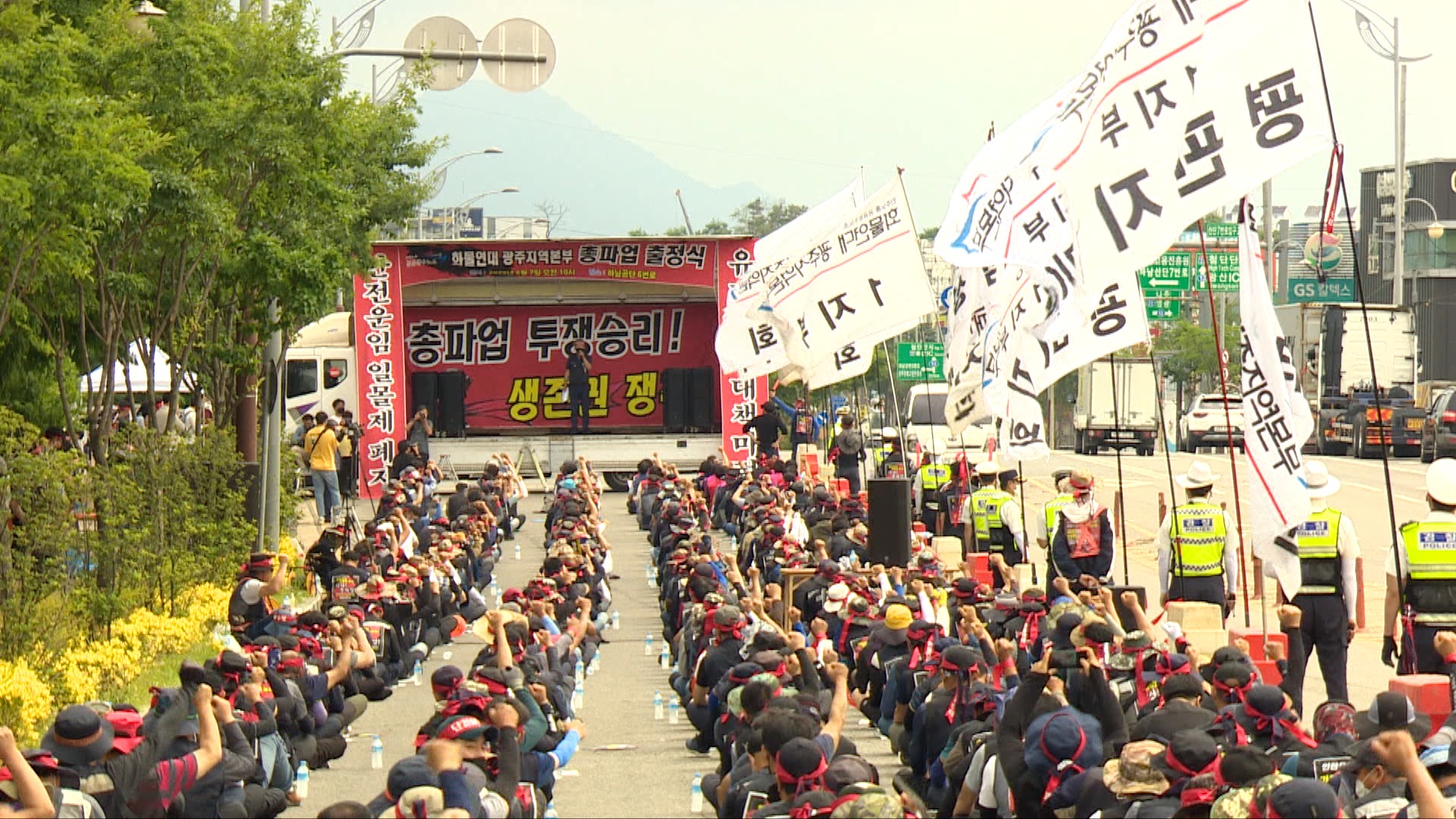 안전운임제 일몰제 폐지를 요구하는 광주 전남 화물연대 조합원들이 다음주 총파업을 예고했습니다. 민주노총 공공운수노조 화물연대 광주전남 지부는 전국 화물연대 총파업에 맞춰 오는 24일 0시부터 광주, 전남 조합원 4천 3백여 명이 무기한 총파업에 들어간다고 밝혔습니다. 이번 총파업은 지난 6월 이후 5개월 만이며 ...