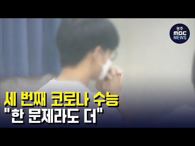 (앵커) 광주·전남 3만 수험생들에겐 오늘(17)이 바로 결전의 날이었죠. 코로나19 상황을 이겨내며 공부해온 수험생 여러분, 애 많이 쓰셨습니다. 올해 수능 날 풍경을 이다현 기자가 전해드립니다. (기자) 수험표를 손에 쥔 학생들이 수능 시험장으로 들어옵니다. 한 문제라도 더 맞히고 싶은 간절한 마음은 저마다 똑같습...