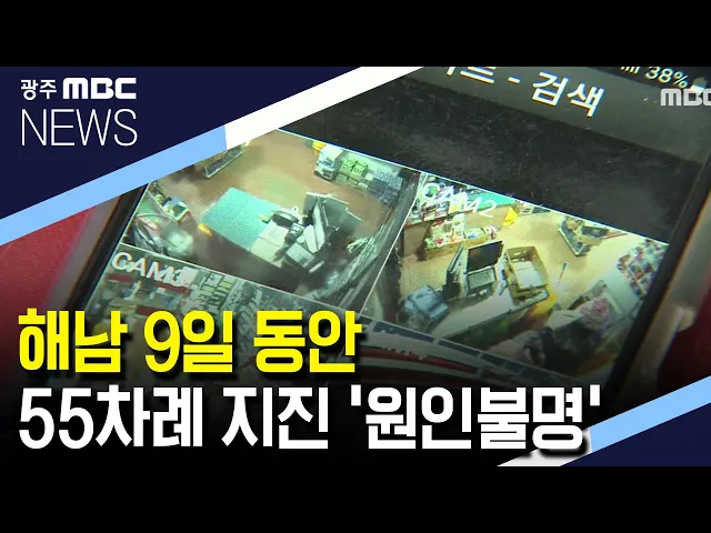 ◀ANC▶ 해남에서 최근 지진이 잇따라 발생하고 있습니다. 9일 동안 무려 쉰다섯 차례입니다. 해남에서 지진이 일어난 건 관측이 시작된 이래 40여년만에 처음입니다. 원인은 아직 오리무중입니다. 김안수 기자가 취재했습니다. ◀END▶ 해남군 산이면의 한 가정집. 거실에 있던 남성이 갑자기 주변을 돌아봅니다. 천둥소...