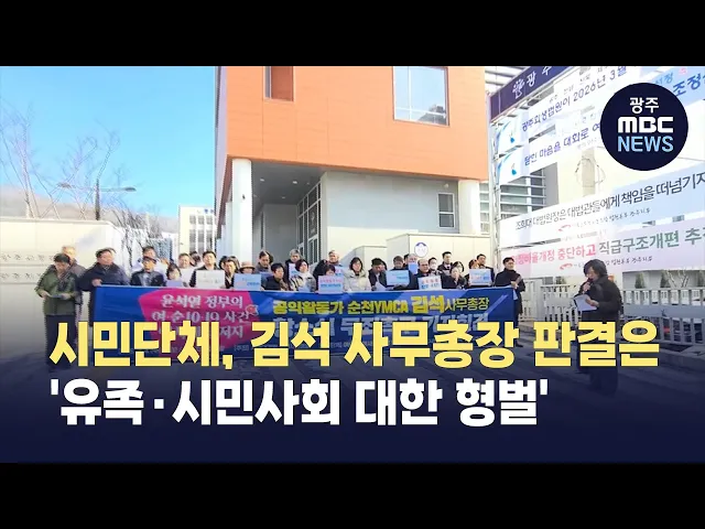 홈오늘의뉴스뉴스데스크뉴스투데이[한걸음 더]취재가시작되자광주MBC단독 prev 2026.2.5 - 목요일 next 시도의회, 광주전남 행정통합 찬성 .. '40년 만의 통합' 가시화 (앵커)광주시의회와 전남도의회가광주전남 행정통합에 공식 찬성했습니다.일부 반대에도 불구하고중요한 관문 하나를 통과하면서행정통합 추진은 더욱 탄력을 받게 됐습니다.정용욱 기자입니다.(기자)교육... 정용욱 [인터뷰온] 우원식 국회의장, "내란 극복의 완성은 5.18 개헌" (앵커)"내란 극복은 5.18 정신을 헌법에 담는 개헌으로 완성된다."우원식 국회의장이 광주MBC와의 대담에서6.3 지방선거와 함께 개헌 국민투표를 치르자고 제안했습니다.내란 사건 1심 재판이 끝나는 이달... 주현정 5.18 헌법전문 수록 결의대회..25일 국회서 개최 전국 시민사회단체와 종교계, 오월단체 등으로 구성된'5.18 헌법전문 수록 개헌 국민추진위원회'가 오는 25일 국회에서 개헌을 촉구하는 결의대회를 개최합니다.국민추진위원회는 이 자리에서5.18 정신의 ... 정용욱 '바위섬' 김원중 문화중심도시 이끈다 (앵커) 노래 '바위섬'으로 전국민의 사랑을 받은 민중가수 김원중씨가 아시아 문화중심도시 조성 사업을 이끄는 조성위원장으로 임명됐습니다.윤석열 정부 이후 명맥이 끊긴 조성위원회를 복원하고 문화중... 박수인 민주당, 보성·영광·장성군수 '적격 보류'… 정밀 심사 착수 더불어민주당 전남도당의 예비후보 자격심사 결과 김철우 보성군수, 장세일 영광군수, 김한종 장성군수가 적격 판정에서 제외되어 공천관리위원회의 정밀 심사를 받게 됐습니다.심사에서 제외된 후보들은 ... 김영창 이차전지 '유지'...RE100 소부장 육성 고삐 (앵커)글로벌 경기 침체와 이차전지 산업의 수요 정체, 이른바 '캐즘' 위기 속에서도 광양만권 경제자유구역이 역대급 투자 유치 성과를 거뒀습니다.행정통합 국면과 맞물려 RE100과 반도체 등 친환경 미... 김주희 작년 광주 출생아 7.7% 증가 .. 혼인 건수도 늘어 광주에서 태어난 신생아가 증가했습니다.광주시가 국가통계포털이 발표한 2025년 11월 인구동향을 분석한 결과 지난해 1월부터 11월까지 광주지역 출생아 수는 6,017명으로전년 동기 대비 7.7% 증가했습니... 정용욱 [제주]탐라국 입춘굿 시작‥ 풍요·무사안녕 기원 (앵커)절기상 봄에 접어든다는 입춘을 맞아제주 전통 축제인 탐라국 입춘굿이 펼쳐졌습니다.제주의 만 8천 신에게올 한 해의 풍요와 무사안녕을 기원했습니다.박주연 기자가 보도합니다.(기자)세찬 바람과... 박주연 [춘천] 집회 대신 민생으로.. 기동대, 지구대에 투입 (앵커)강원경찰청이 전국 최초로 민생 치안 현장에 기동대를 투입했습니다.주로 집회와 시위 대응을 맡아오던 기동대를 지구대와 파출소에 전진 배치한 건데요.앞으로 민생 치안이 어떻게 달라지는지,춘천... 나금동 [원주]외국인 가장 많은데.. "새벽부터 오픈런해야" (앵커)춘천과 고성, 속초, 동해 등 강원도에서는 4개 시·군에서 출입국·외국인사무소가 운영 중입니다.그런데 정작 외국인이 가장 많은 원주에는사무소가 없습니다.뿐만 아니라 병역검사나 국가유공자 보... 황구선 문상필 더불어민주당 부대변인, 광주 북구청장 선거 출마 선언 문상필 더불어민주당 부대변인이 광주 북구청장 선거 출마를 공식 선언했습니다.문 부대변인은 어제(4)광주역 광장에서 기자회견을 열고AI를 행정·산업·교육·복지·문화 전반에 접목하고국회도서관 광주분... 주지은 박인환 전 전남도의회 의장, 구례군수 출마 선언 박인환 전 전남도의회 의장이 어제(4) 전남도의회에서 기자회견을 하고오는 6.3지방선거 구례군수 출마를 선언했습니다.박인환 출마예정자는 "전남·광주 통합특별시시대는 구례의 미래를 다시 설계할 결정... 김영창 "공익 위한 시민행동은 무죄"… 김석 사무총장 판결 반발 광주전남 시민사회가 여순사건 보고서 편향성에 항의하다 징역형을 받은 김석 순천YMCA 사무총장의 무죄를 촉구했습니다.이들은 어제(4) 광주지법 앞에서 기자회견을 열고, "역사 왜곡에 맞선 정당한 공익... 주지은 광주교통공사, 공무직 대체인력 예비자 35명 모집 광주교통공사가공무직 직원의 출산휴가나 병가 등으로 인한 업무 공백을 최소화하기 위해공무직 대체인력풀 35명을 공개 모집합니다.응시원서는 오는 6일부터 12일까지 온라인 채용사이트를 통해 접수하면... 정용욱