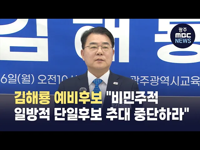 홈오늘의뉴스뉴스데스크뉴스투데이[한걸음 더]취재가시작되자광주MBC단독선거는 중요합니다 prev 2026.3.17 - 화요일 next 이병훈 불출마 ‘경선판 요동’… 6인 체제 재편, 표심은 어디로? (앵커)더불어민주당 전남광주통합특별시장 예비경선을 사흘 앞두고 이병훈 후보가 경선 불참을 전격 선언했습니다.6인 구도로 선거판이 재편되면서후보 간 경쟁은 더욱 치열해질 전망입니다.주지은 기자입... 주지은 민주당 통합특별시장 경선.. A조 4인·B조 2조 체제 확정 이병훈 후보의 불참으로 민주당 전남광주통합특별시장 경선 대진표는 각각 4인, 2인 체제로 확정됐습니다.어제(17)부터 이틀간 광주·여수·목포MBC에서 방송되는 TV토론회는 김영록·강기정·주철현·민형배 ... 주지은 지하철 2호선 얼만큼 지었나?..역 이름 공모도 마감 (앵커)광주 도시철도 2호선 공사가 어느덧 7년째 이어지고 있습니다.최근에는 새 역 이름을 정하기 위한 시민 공모까지 마무리됐는데요.공사는 얼마나 진행됐고, 또 어떤 이색적인 이름들이 후보에 올랐는... 박승환 담양서 농기계 깔린 60대 의식불명 오늘(16) 오후 4시 20분쯤담양군 수북면 오정리의 한 도로에서66살 남성이 자신이 운전하던 트랙터에 깔렸습니다.이 사고로 크게 다친 남성은 심정지 상태로가까운 병원으로 옮겨졌으나아직 의식을 찾지 ... 박승환 전남경찰청, 국가 주요 인사 경호 비밀문서 분실 전남경찰청이 국가 주요 인사를 보호하는 요인 경호 관련 비밀 문서를 분실해경찰청이 경위 파악에 나섰습니다.전남경찰청은 지난달 말담당자 인수인계 과정에서비밀 문서로 분류된 경호 관련 업무지침 책... 윤소영 행정·교육 통합 앞두고 "광산교육지원청 부활해야" (앵커)오는 7월 전남광주통합특별시가 출범하는 가운데,광주 교육계의 해묵은 과제인 ‘광산교육지원청’ 신설에 대한 목소리가 그 어느 때보다 높습니다.인구 40만에 가까운 거대 자치구인데도 독자적인 교... 한신구 김해룡, "비민주적 일방적 단일후보 추대 중단하라" 김해룡 전남광주교육감 예비후보가민주진보교육감 전남 공천위원회의비민주적이고 일방적인 단일후보 추대를 즉각 중단하라고 촉구했습니다.김 예비후보는전남 공천위가 후보간 합의했던 토론회 일정을후... 한신구 "원료 끊기고 관세 압박"…'특별대응지역' 격상 검토 (앵커)중동 사태로 원료 수급에 비상이 걸린여수 국가산단을 '산업위기 특별대응지역'으로 격상하는 방안이 추진됩니다.기존 '선제대응' 단계로는감당하기 어려울 만큼지역 경제의 뿌리가 흔들리고 있다는... 박현주 [강원영동]BTS '아리랑' 열기, 정선 '아리아라리'로 세계 홀린다 (앵커)오는 21일 발매되는 BTS의 5집 앨범'아리랑'에 전 세계의 이목이 쏠린 가운데, 그 영향력이 강원도 정선까지 흐르고 있다고 합니다.아리랑의 시초로 불리는 정선아리랑이 K팝의 세계화 흐름을 타고 ... 이아라 [부산] 무허가 동물 카페..고발에도 배짱 영업 (앵커)부산 광안리 번화가에는 지난해 말, 문을 연 한 대형동물 카페가 성업 중입니다.말이 카페이지, 실제로는 동물 전시·체험 시설로 운영돼'동물원'으로 허가를 받아야 하지만판매용 동물을 전시하는 ... 신지혜 [제주]"박진경 무공훈장 일단 덮자"‥4·3 유족 반발 (앵커)제주 4·3사건 당시 진압 작전을 지휘했던 박진경 대령이 최근 국가유공자로 등록됐다4·3 유족들의 반발에 부딪쳐 등록이 취소됐는데요.그런데, 권오을 국가보훈부 장관이박진경 대령이 받았던 무공... 조인호 김병내, 광주 남구청장 3선 도전 "경제·문화·교육 중심 도시 만들 것" 김병내 광주 남구청장은"광주 남구를 대한민국 남부권의 경제·문화·교육 중심 도시로 만들겠다"며3선 도전을 공식 선언했습니다.김 청장은 "남구의 첨단산업을 기반으로 자족형 경제도시, 체류형 관광도시... 박승환 정다은, 광주 북구청장 출마 "반값 임대료.. 숙원 해결사 자처" 광주 북구청장 선거에 나선 정다은 예비후보는낡은 관행을 깨는 역동적 리더십을 강조하며, 자영업자 반값 임대료 지원과 AI 복합단지 조성 등 지역 경제 활력 정책을 최우선 과제로 내세웠습니다.특히 광... 주지은 결핵 환우의 대모, 여성숙 선생 향년 108세 별세 결핵 환우들의 어머니로 불린 여성숙 선생이 향년 108세의 나이로 어제(16) 오전 별세했습니다.여 선생은 1918년 태어나 경성여자의학전문학교를 졸업한 뒤 무안군에 결핵요양원 ‘한산촌’을 세우고 결핵 ... 박혜진