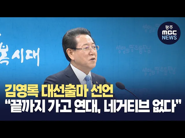 (앵커)김영록 전남지사가 오늘(5일) 기자들과 만나사실상 대선출마를 선언했습니다.김 지사는 경선 완주는 물론, 타 후보와 연대를 하지 않겠다고 선을 그은 가운데 정치권에서는 엇갈린 반응이 나오고 있습니다.김 윤 기자가 보도합니다.(기자)김영록 전남지사가 대권도전 의사를 강력히 표명했습니다.김지사는 도청 출입...