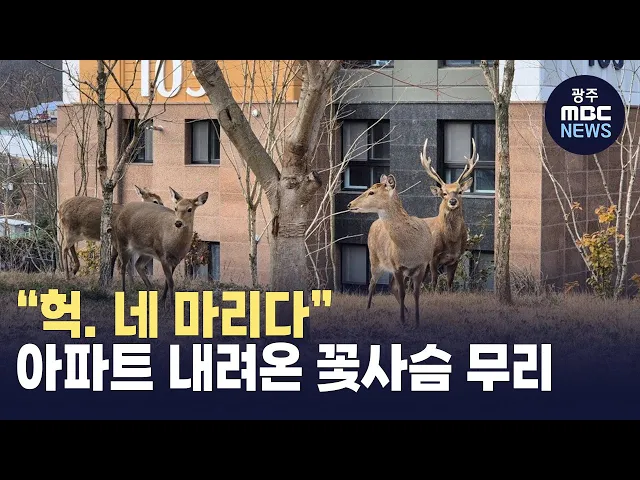 (앵커)순천 도심속 봉화산 주변에서사슴 무리가 주민들에게자주 목격되고 있습니다.10여 년 전부터 산에 살기 시작한 사슴은번식을 거쳐 개체 수가 급증했는데,최근에는 아파트 단지에접근하는 경우도 늘고 있습니다.유민호 기자입니다.(기자)아파트 단지 울타리 바깥으로사슴 세 마리가 지나갑니다.뒤이어 큰 뿔이 달린수...