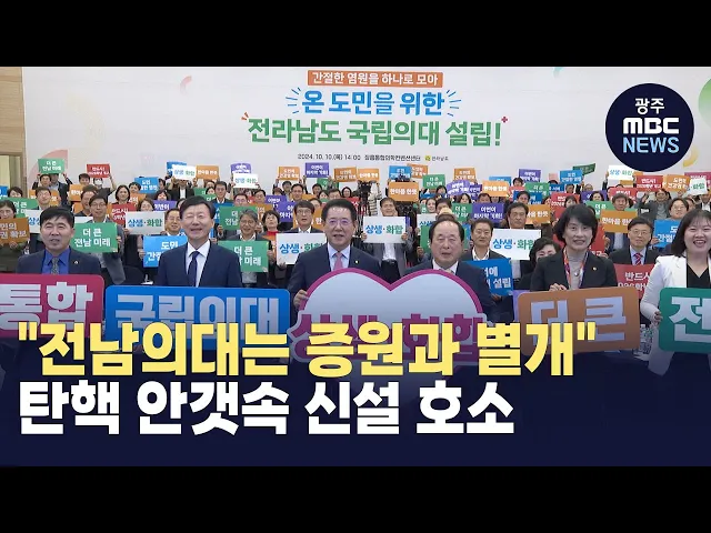 (앵커)갈등 끝에 대학 통합까지 이뤄낸전남 최초의 국립 의대 설립,탄핵 정국에 맞물려 위기를 맞고 있습니다.전남도는 연일 정부 설득 작업을 이어가고 있는데요.국가적 혼란 속 전망을 서일영 기자가 취재했습니다.(기자)지난해 11월 교육부에 대학통합신청서를 제출한 국립 목포대와 순천대.의대 설립의 큰 고비를 넘겼...