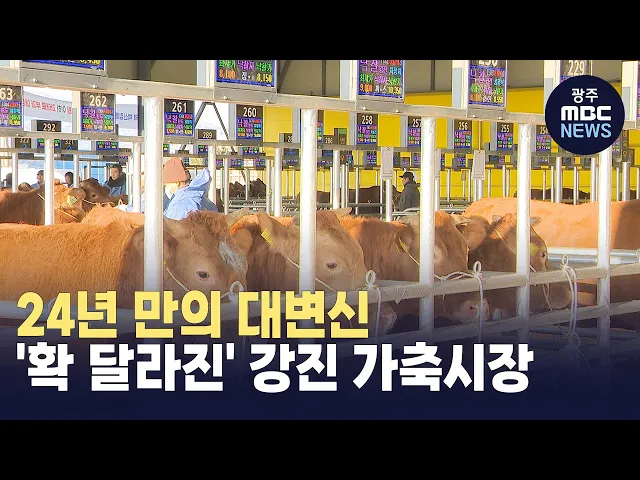 (앵커)강진 가축시장이 24년 만에 새로운 모습으로 단장했습니다.거래되는 소에 대한 정확한 정보를 제공해신뢰도를 높이고 안전성도 강화되면서이용자들의 만족도도 높아졌습니다.박종호 기잡니다. (기자)이른 아침부터소를 실은 차들이 가득 등장한 이 곳.설 대목을 앞두고 거래가 한창인 강진 가축시장입니다.우리나라 ...